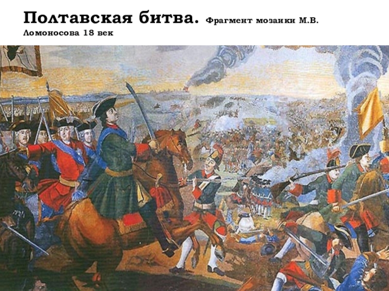 Слайд 15Полтавская битва. Фрагмент мозаики М.В. Ломоносова 18 век