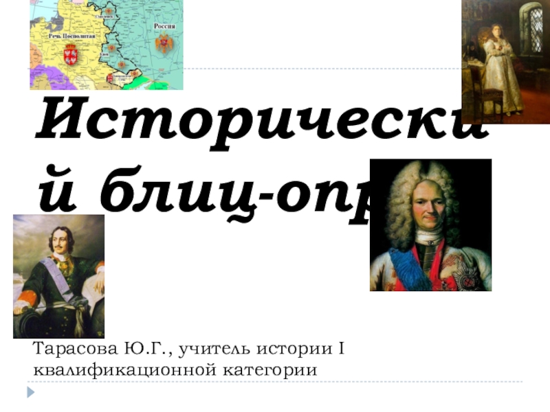 Слайд 1Исторический блиц-опрос Тарасова Ю.Г., учитель истории I квалификационной категории