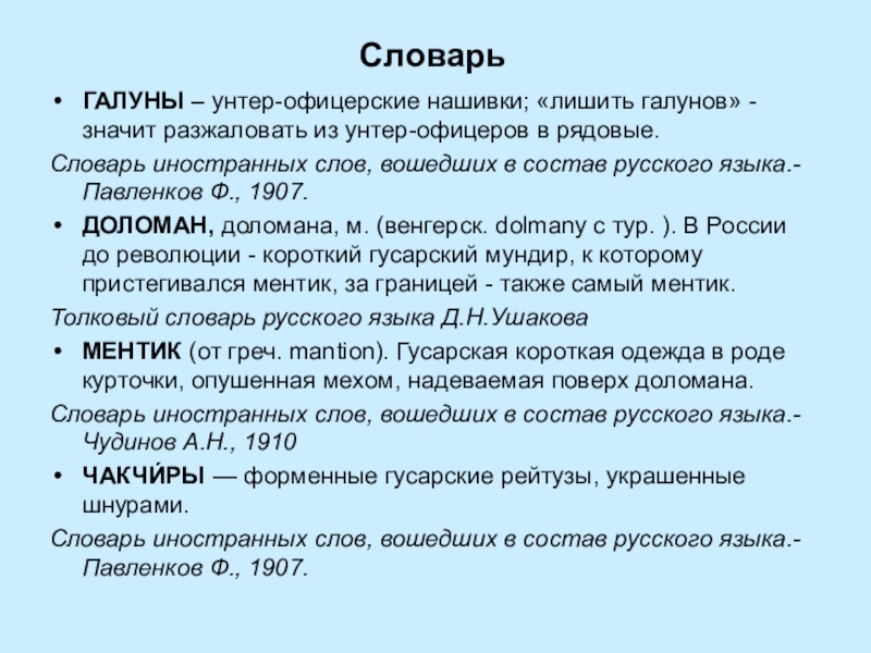 ГАЛУНЫ – унтер-офицерские нашивки; «лишить галунов» - значит разжаловать из