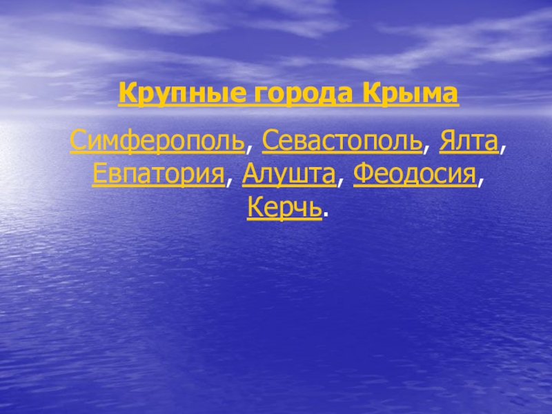 • Необходимость срочно решать вопрос с пресным водоснабжением (сейчас туда доставляется пресная вода из Днепра) и электроснабжением Крыма, который вырабатывает лишь 30% электроэнергии от своего потребления.