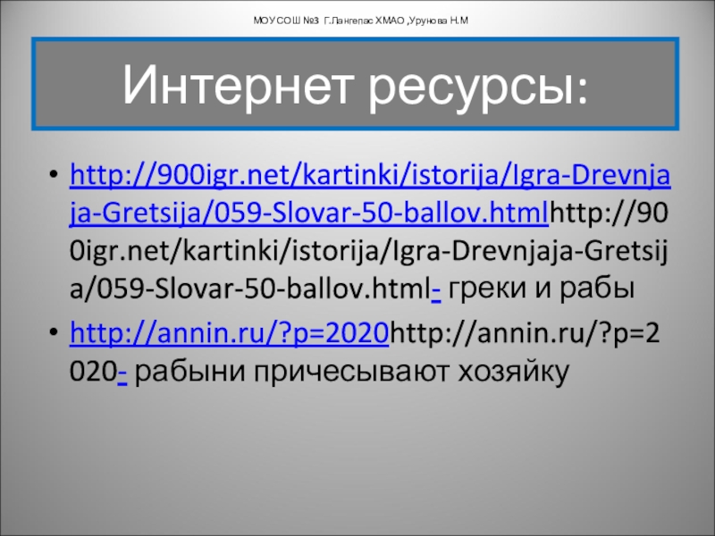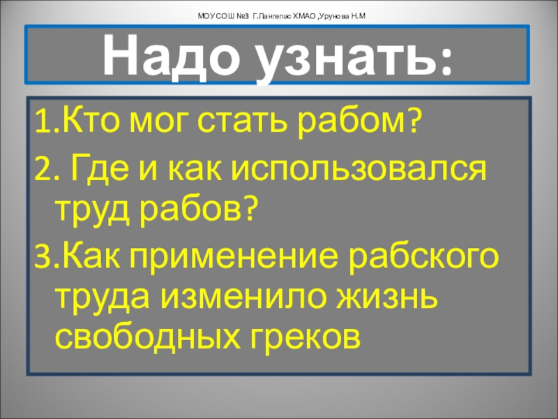 МОУ СОШ №3 Г.Лангепас ХМАО ,Урунова Н.М