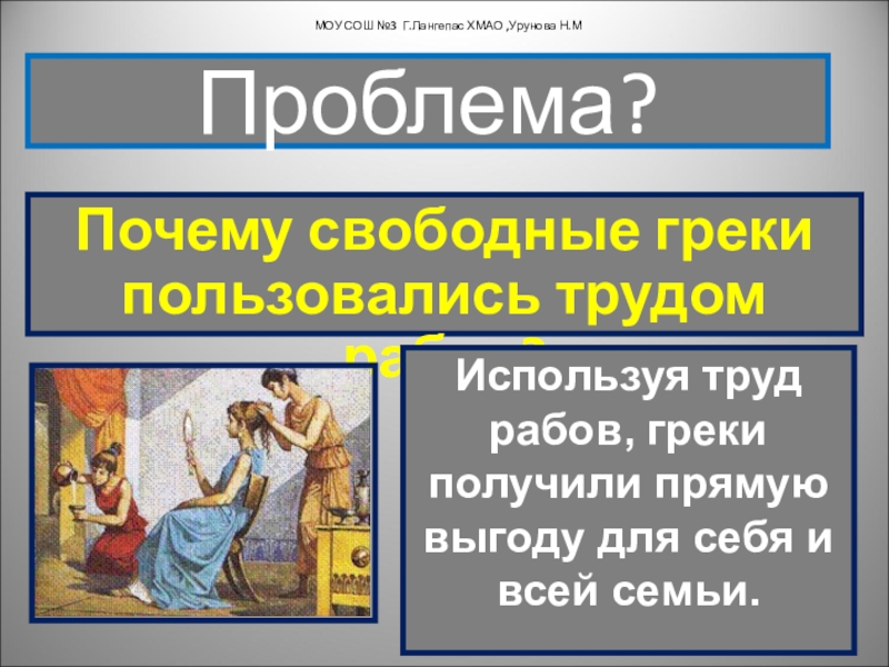 Используя труд рабов, греки получили прямую выгоду для себя и всей семьи.