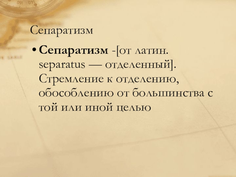 Сепаратизм -[от латин. separatus — отделенный]. Стремление к отделению,