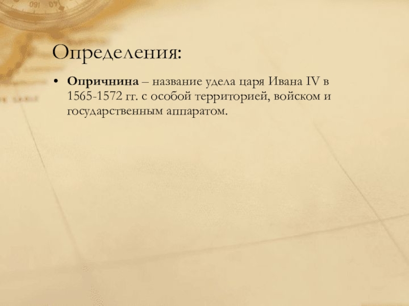 Опричнина – название удела царя Ивана IV в 1565-1572 гг. с
