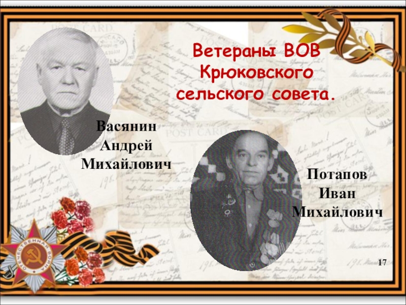 Ветераны ВОВ Крюковского сельского совета.Потапов Иван МихайловичВасянин АндрейМихайлович