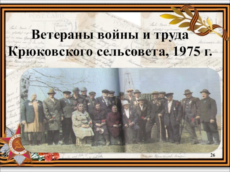 Слайд 26Ветераны войны и труда Крюковского сельсовета, 1975 г.