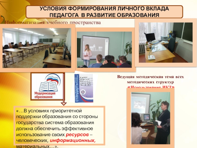 «…В условиях приоритетной поддержки образования со стороны государства система образования должна обеспечить эффективное использование своих ресурсов – человеческих, информационных, материальных…».