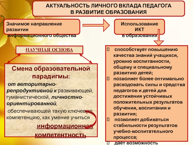 от авторитарно-репродуктивной к развивающей, гуманистической, личностно-ориентированной,