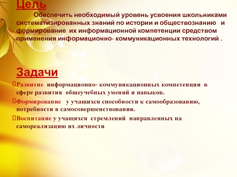 Развитие информационно- коммуникационных компетенции в сфере развития общеучебных умений и навыков.