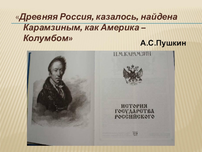 «Древняя Россия, казалось, найдена Карамзиным, как Америка – Колумбом» А.С.Пушкин