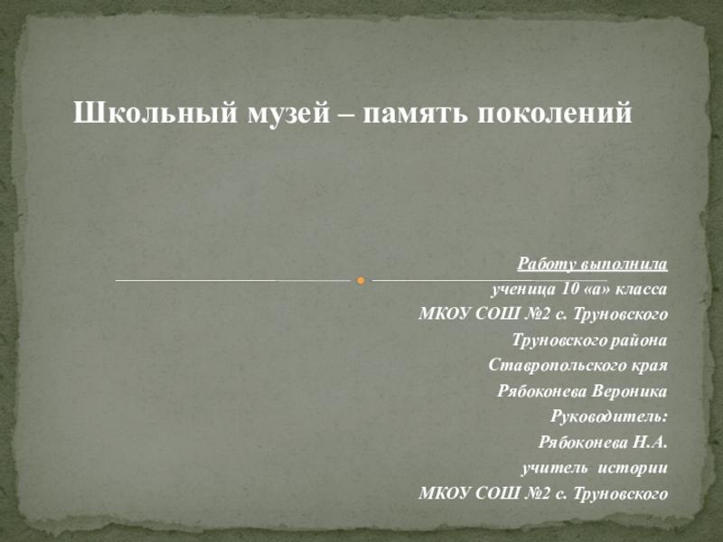 Школьный музей – память поколений