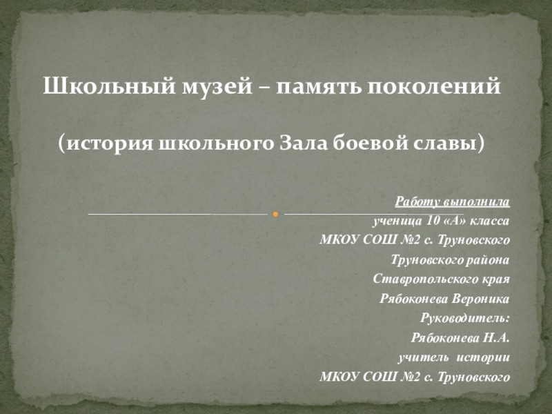 (история школьного Зала боевой славы)