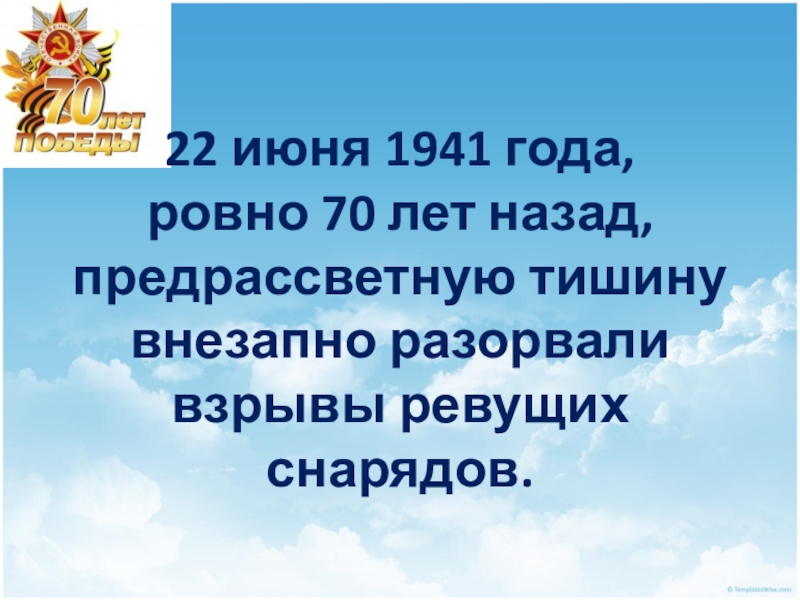 Слайд 622 июня 1941 года, ровно 70 лет назад, предрассветную тишину внезапно