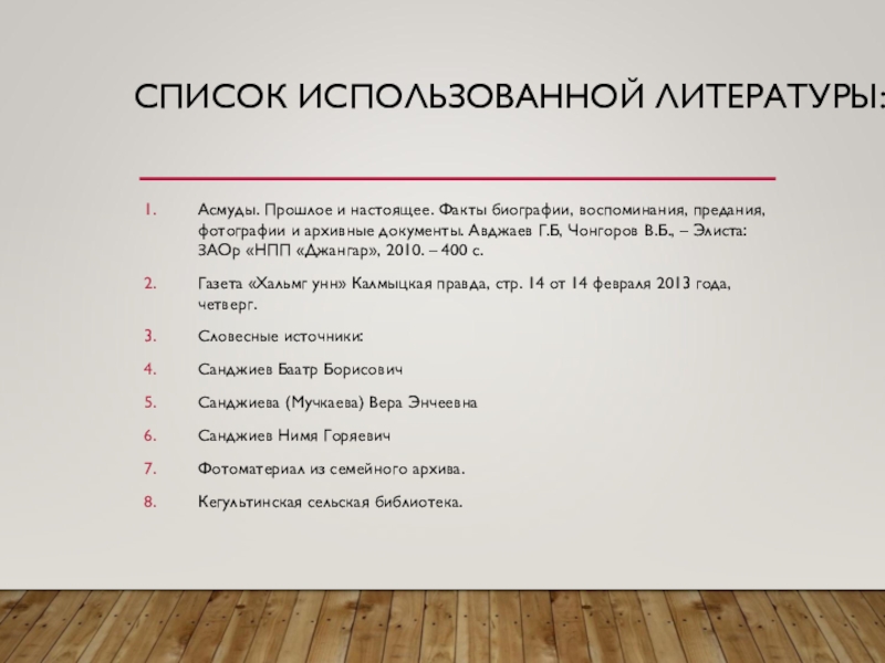 Слайд 14СПИСОК ИСПОЛЬЗОВАННОЙ ЛИТЕРАТУРЫ: