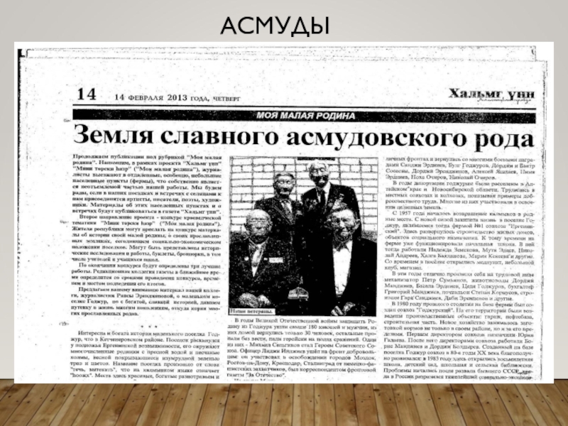 Газета «Хальмг унн» Калмыцкая правда, стр. 14 от 14 февраля 2013 года, четверг.