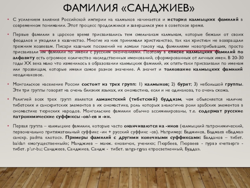 калмыцких фамилий в современном понимании. Этот процесс продолжился и завершился уже в советское время.