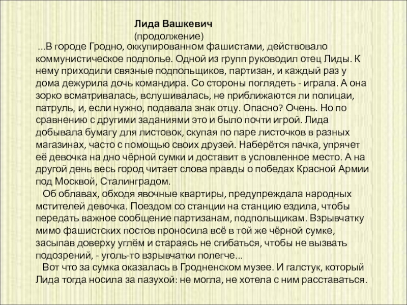 Присмотревшись к мальчику, коммунисты доверили Вале быть связным и разведчиком в своей подпольной организации. Он узнавал расположение вражеских постов, порядок смены караула.