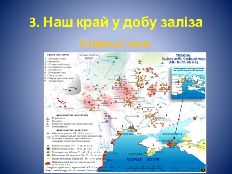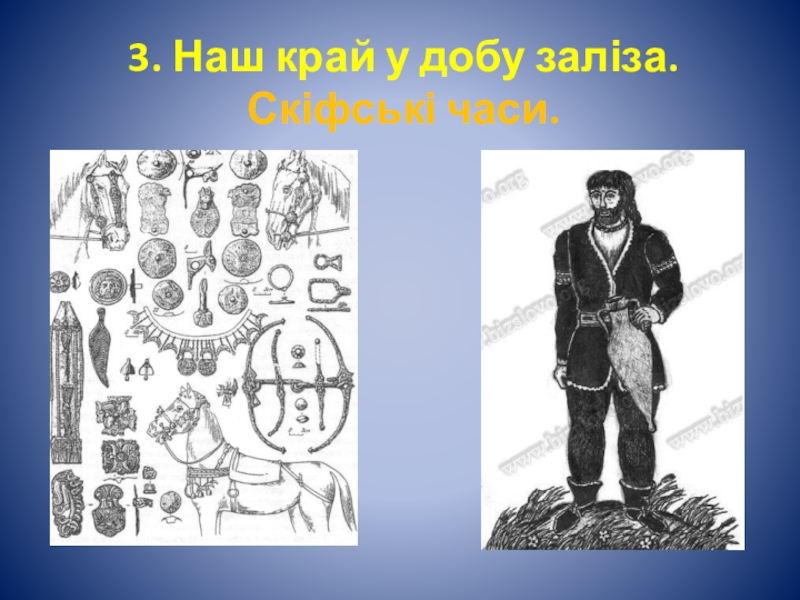 палеоліту, неоліту, енеоліту та доби бронзи, час перебування на території Харківщини кіммерійців, скіфів, сарматів;