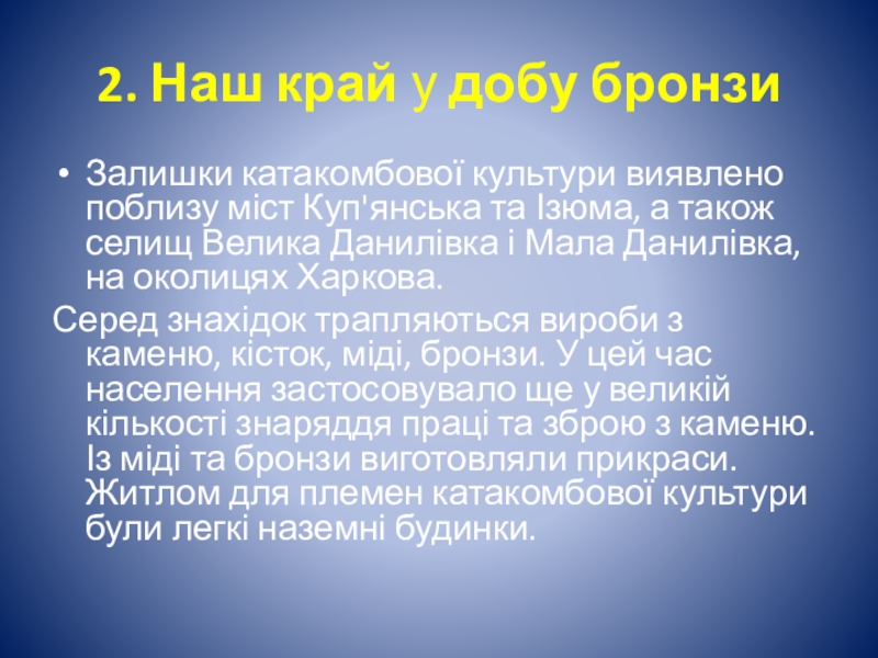 II тис. до н. є. на території нашого краю проживали племена катакомбової
