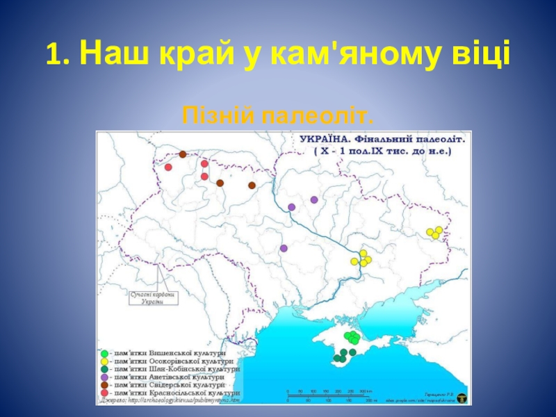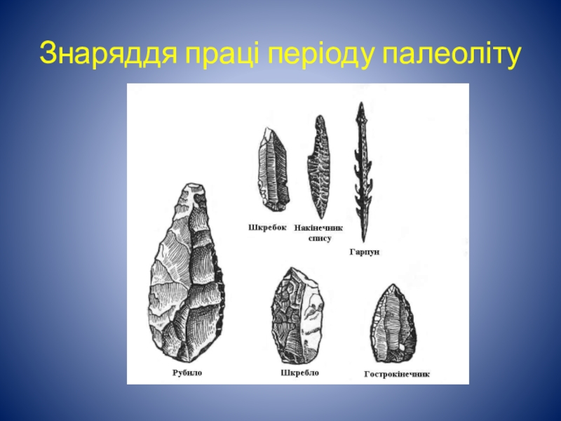 Палеолітом називають найдавніший період, час існування викопної людини, який почався приблизно 2,6 млн. років і закінчився приблизно 10 тис. років до н. є. з виникненням землеробства.