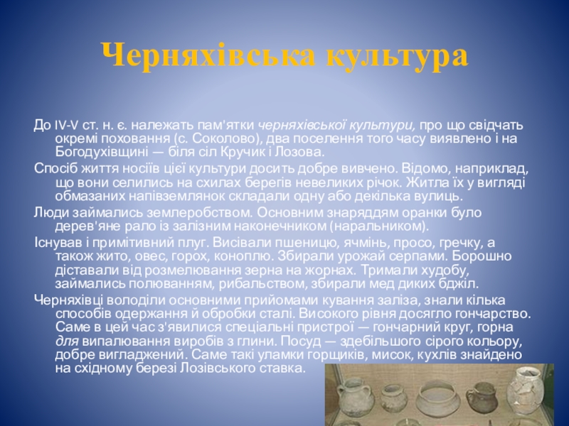 До IV-V ст. н. є. належать пам'ятки черняхівської культури, про