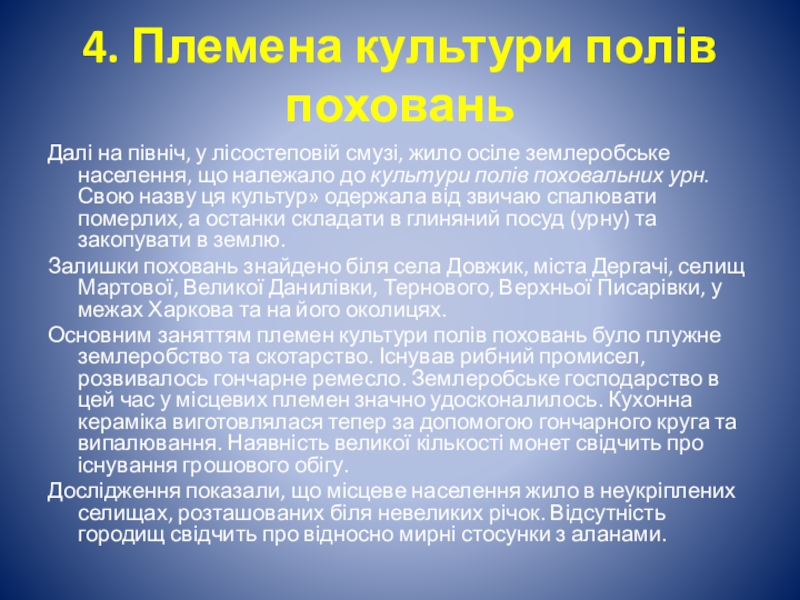 Харківщини, про що свідчать курганні та безкурганні поховання біля сіл Роздольне, Новоселівка, міст Балаклія та Ізюм.