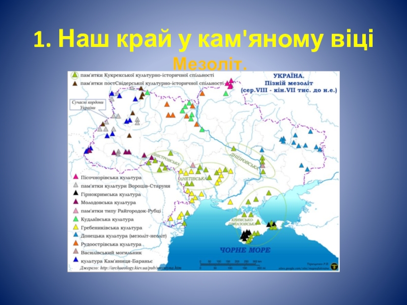 показати на карті місця археологічних пам'яток первісної епохи, розташування городищ;