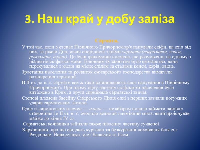 Степові племена басейну Сіверського Дінця одні з перших зазнали потужних ударів сарматських загонів.