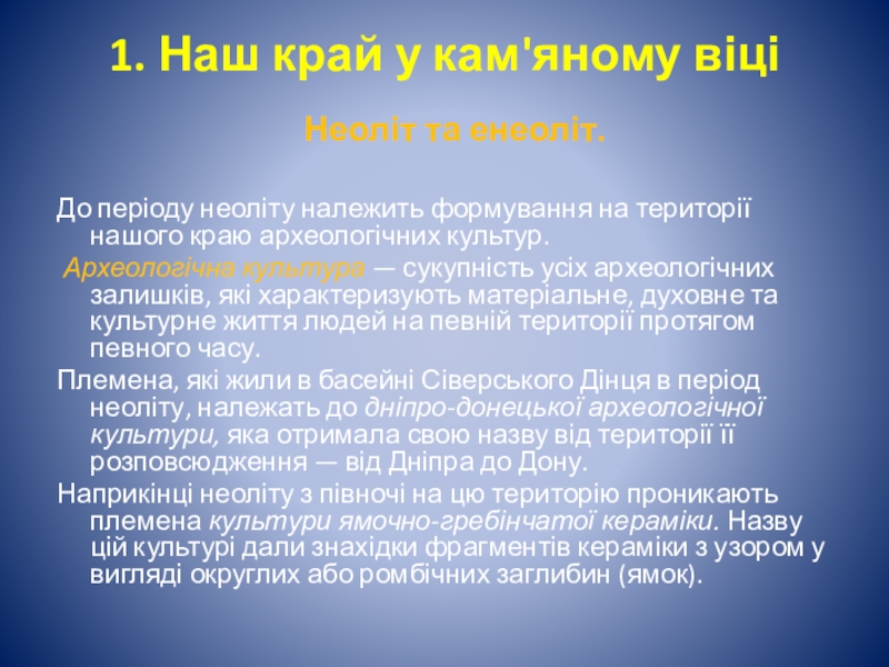 нова кам'яна доба, датується для Харківщини 5-3 тис. до н. є.