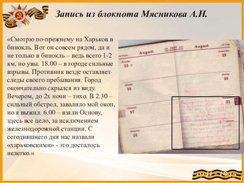 Запись из блокнота Мясникова А.Н.