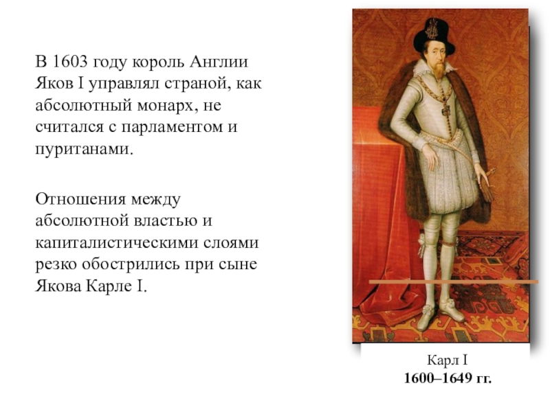 Отношения между абсолютной властью и капиталистическими слоями резко обострились при сыне Якова Карле I.