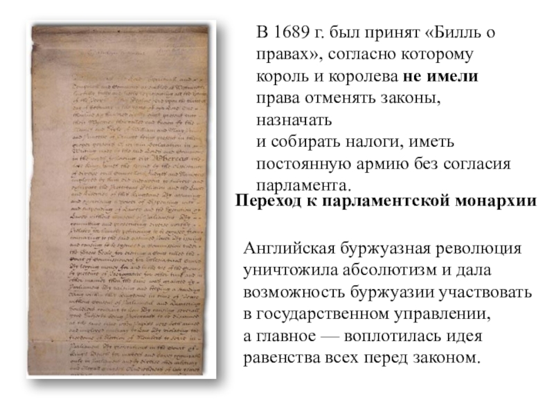 Английская буржуазная революция уничтожила абсолютизм и дала возможность буржуазии участвовать в государственном управлении,