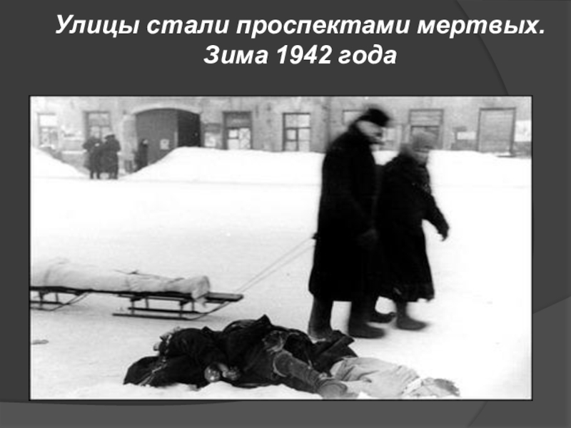 Слайд 12Улицы стали проспектами мертвых. Зима 1942 года