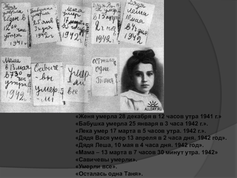 «Женя умерла 28 декабря в 12 часов утра 1941 г.»