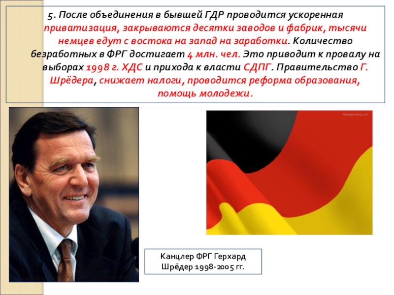 Канцлер ФРГ Герхард Шрёдер 1998-2005 гг.
