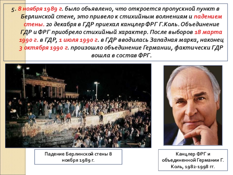 Канцлер ФРГ и объединенной Германии Г.Коль, 1982-1998 гг.