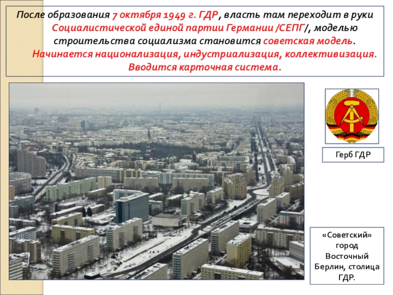 «Советский» город Восточный Берлин, столица ГДР.