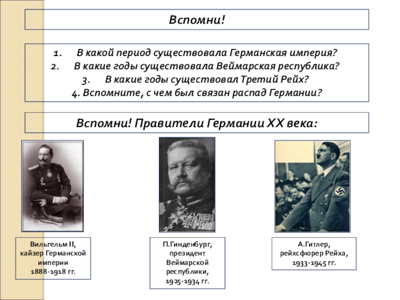 Вспомни! Правители Германии ХХ века: