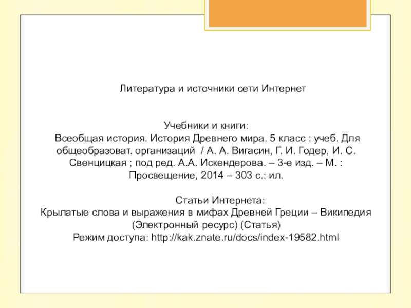 Всеобщая история. История Древнего мира. 5 класс : учеб. Для общеобразоват. организаций / А. А. Вигасин, Г. И. Годер, И. С. Свенцицкая ; под ред. А.А. Искендерова. – 3-е изд. – М. :