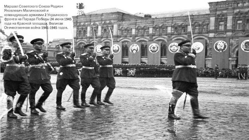 фронта на Параде Победы 24 июня 1945 года на Красной площади. Великая Отечественная война 1941-1945 годов.