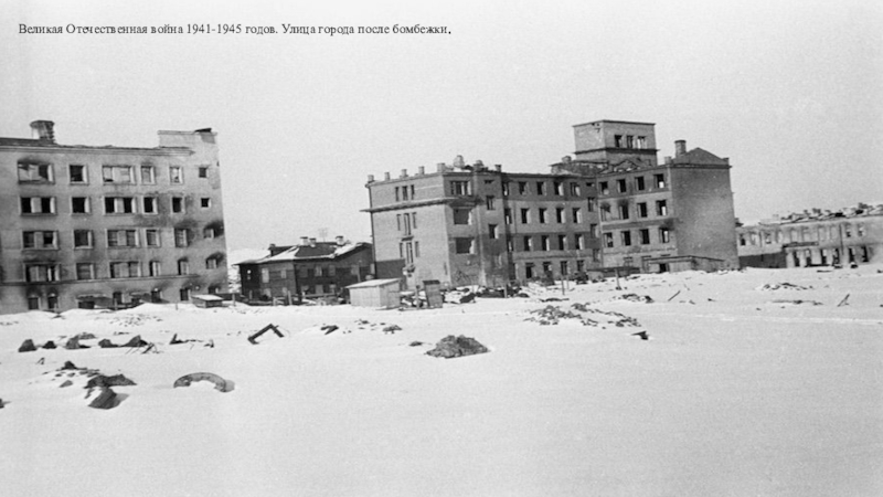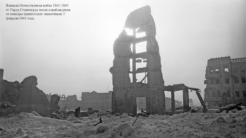 Слайд 57Великая Отечественная война 1941-1945 гг. Город Сталинград после освобождения от немецко-фашистских