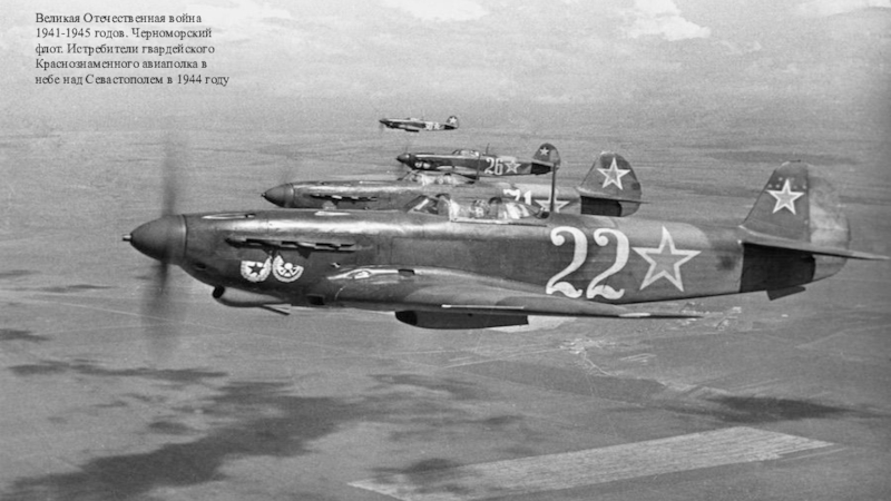 Слайд 27Великая Отечественная война 1941-1945 годов. Черноморский флот. Истребители гвардейского Краснознаменного авиаполка