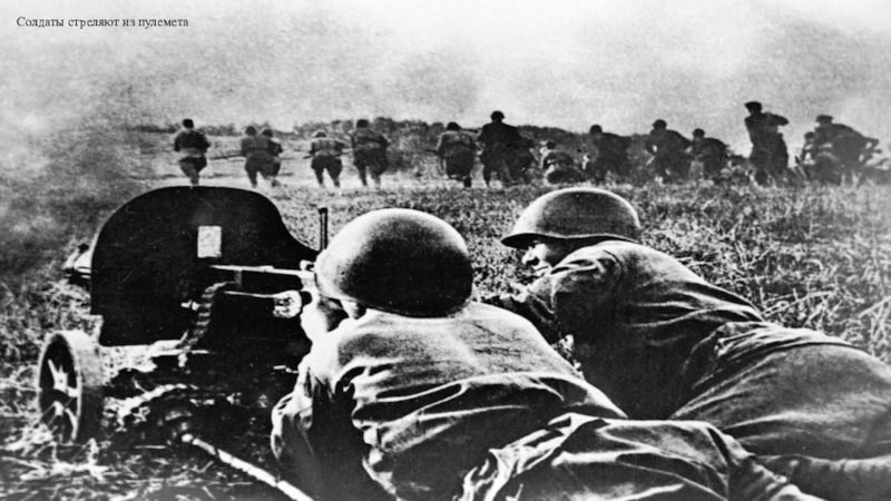 Слайд 58Великая Отечественная война 1941-1945 гг. Советские солдаты ведут бой на территории