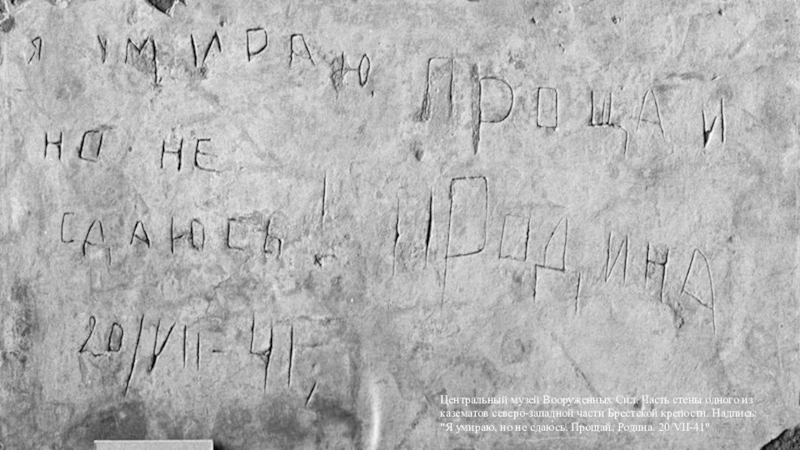 Брестской крепости. Надпись: "Я умираю, но не сдаюсь. Прощай, Родина. 20/VII-41"