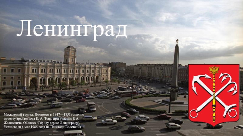 Тона, при участии Р. А. Желязевича. Обелиск ''Городу-герою Ленинграду''. Установлен в мае 1985 года на Площади Восстания.