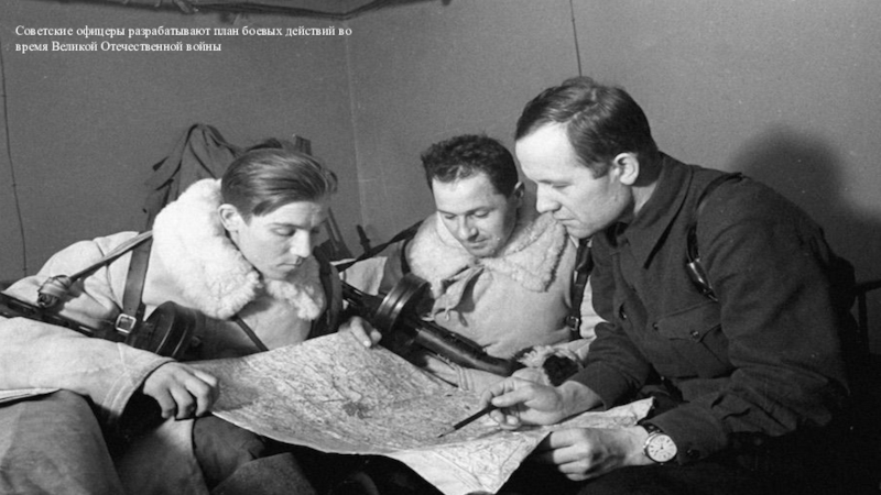 Слайд 44Советские офицеры разрабатывают план боевых действий во время Великой Отечественной войны