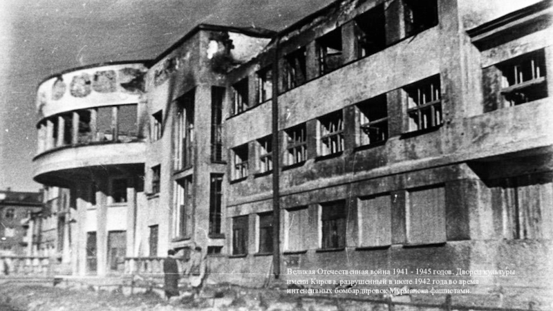 разрушенный в июле 1942 года во время интенсивных бомбардировок Мурманска фашистами.