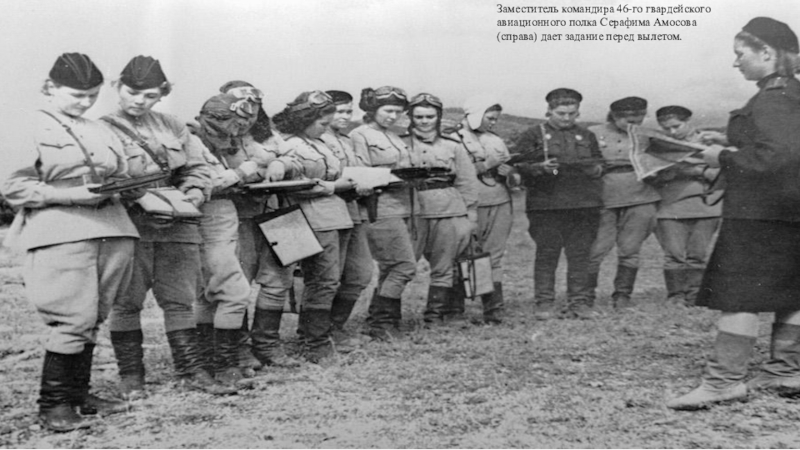 Слайд 37Заместитель командира 46-го гвардейского авиационного полка Серафима Амосова (справа) дает задание