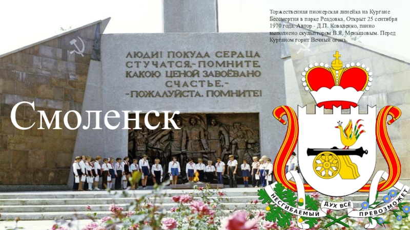 сентября 1970 года. Автор - Д.П. Коваленко, панно выполнено скульптором В.Я. Меньшовым. Перед Курганом горит Вечный огонь.
