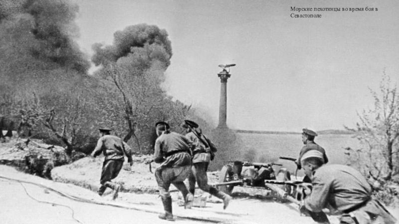 Слайд 28Морские пехотинцы во время боя в Севастополе